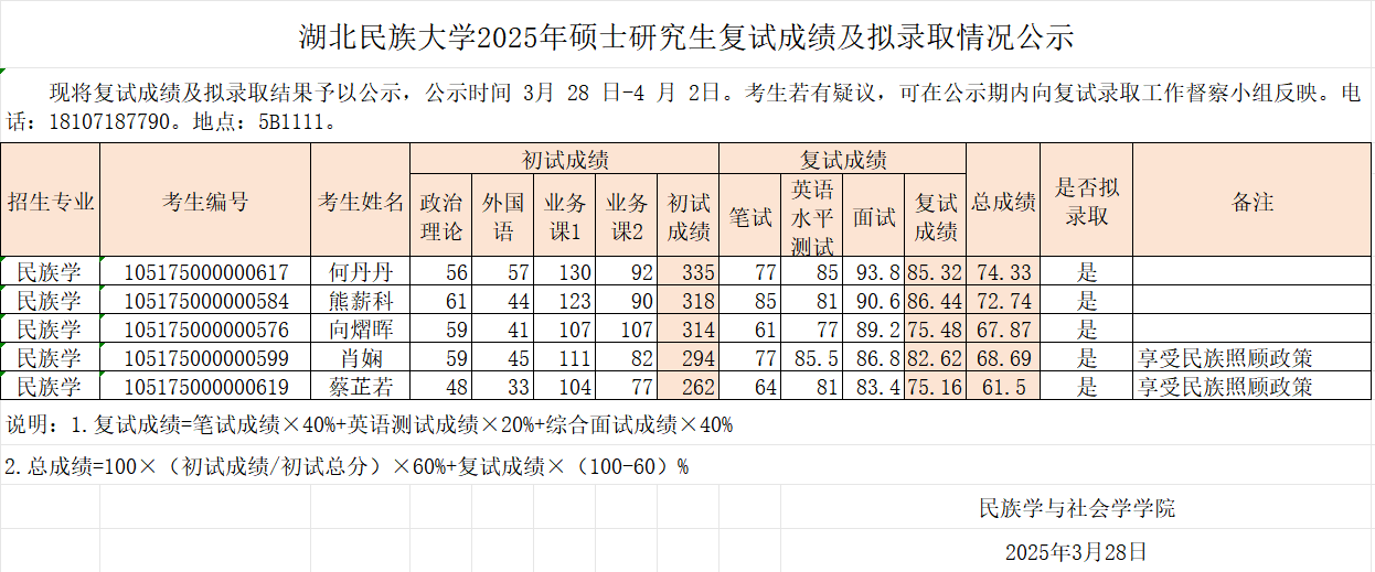 yL23411永利官网登录民族学与社会学学院2025年硕士研究生第一志愿考生成绩及拟录取情况公示