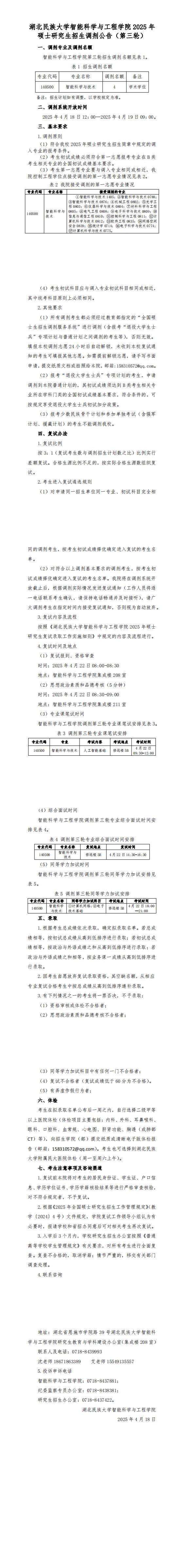 yL23411永利官网登录智能科学与工程学院2025年硕士研究生招生调剂公告(第三轮)