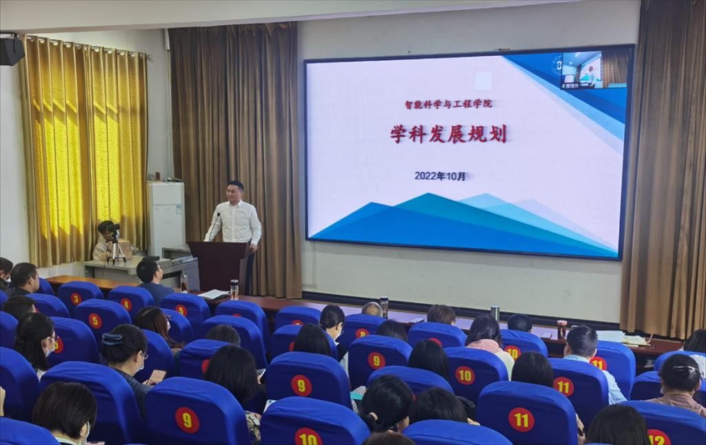 10月20日,智能科学与工程学院执行院长陈世强于集成楼213学术报告厅作《智能科学与工程学院学科发展规划》报告。学院党委副书记汪涛、副院长钱楷、副院长向军出席会议,学院全体教职工参加会议,党委书记孙先波主持会议。