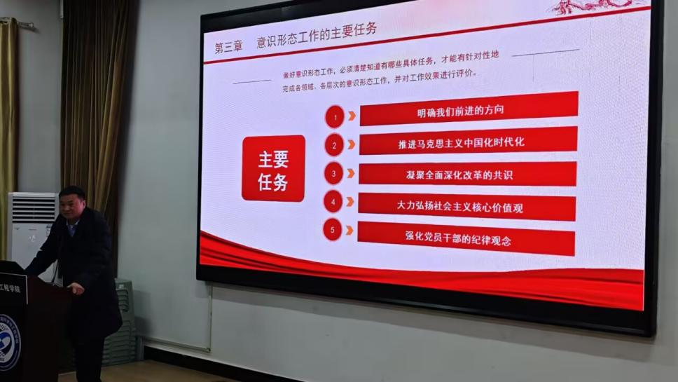 12月15日20:20,在集成楼213教室,我院院长陈世强为青马班学员带来了一场主题为“坚定不移做好新时代意识形态工作”的精彩授课。此次培训班吸引了我院学生会、团总支成员,以及各班团干部踊跃参与,现场学习氛围浓厚。
