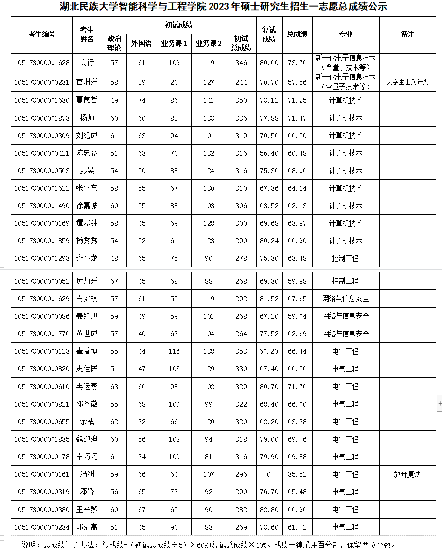 yL23411永利官网登录智能科学与工程学院2023年硕士研究生招生一志愿总成绩公示
