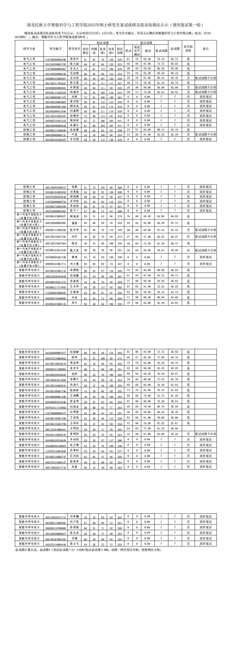 yL23411永利官网登录智能科学与工程学院2025年硕士研究生复试成绩及拟录取情况公示(调剂复试第一轮)