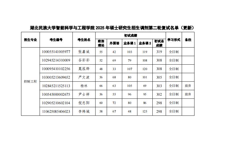 yL23411永利官网登录智能科学与工程学院 2025 年硕士研究生招生调剂复试名单(调剂第二轮第二次更新)
