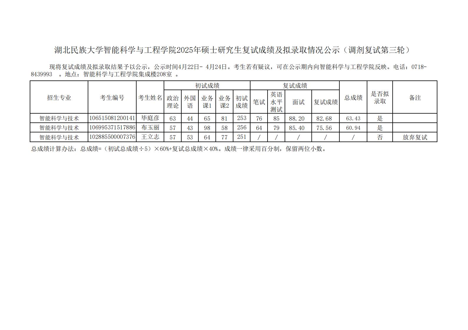 yL23411永利官网登录智能科学与工程学院2025年硕士研究生复试成绩及拟录取情况公示(调剂复试第三轮)