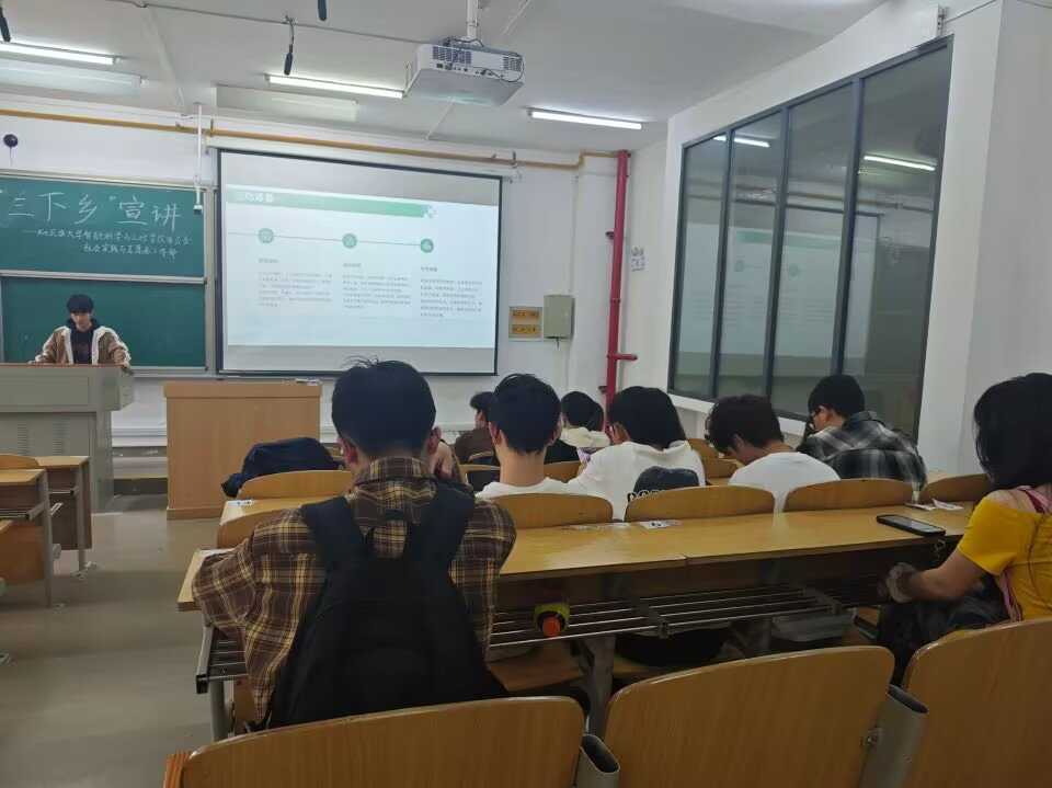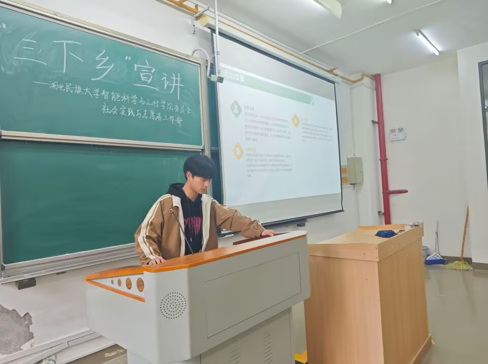 活动当日,修院楼教室座无虚席,来自学院的众多同学早早到场,对此次宣讲充满期待。宣讲活动伊始,社会实践与志愿者工作部的负责人通过生动的 PPT 展示,深入浅出地阐述了三下乡志愿服务的内涵。“三下乡” 即文化、科技、卫生下乡,是为了促进农村发展、缩小城乡差距而开展的重要社会实践活动,对推动乡村振兴战略实施具有深远意义。