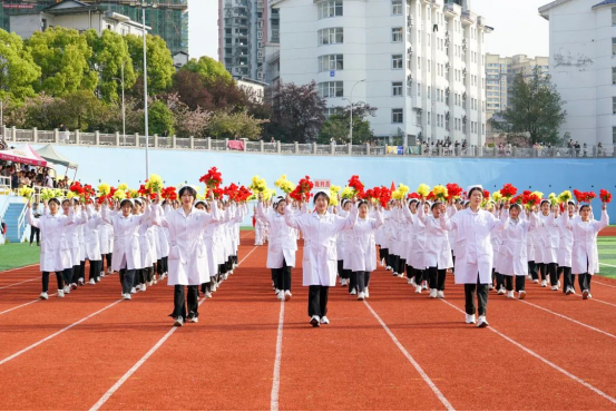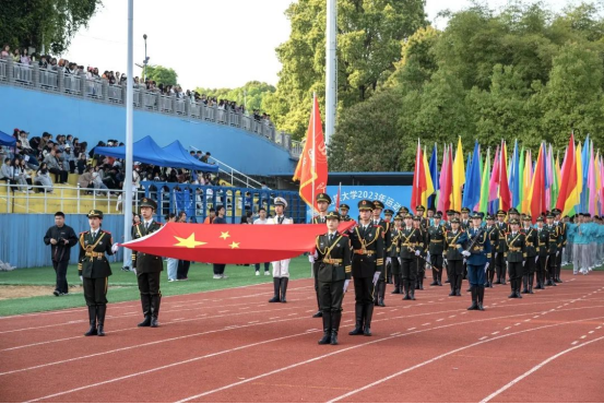 开幕式时,校国旗护卫队方队、彩旗方队、鲜花方队、裁判员方队以及各院运动员方阵在激昂的《运动员进行曲》中依次入场,各方队青春活力、精神饱满、口号响亮,有的挥舞彩旗,展示着青春风采;有的舞姿翩翩,尽显优雅姿态;有的身着民族服饰,自信在他们脸上洋溢;还有独具土家族民族风采竹马表演,舞蹈动作朝气蓬勃。各方阵都获得了现场观众的阵阵欢呼与掌声,田径场上尽显青春的活力与精神面貌。
