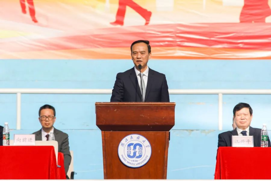 党委副书记邓磊在致开幕词中表示,运动会是学校“全方位育人”的重要载体,是学校师生“育体”与学校“育人”有机结合的具体表现;运动会是一场体育竞技盛会,也是一堂挑战自我、勇攀高峰、实现梦想的成长课程;运动会是广大师生展示自我风采的舞台,也是促进相互融合交流的平台。他希望全体运动员秉承“锻炼身体、增强体魄”的宗旨,追求“团结、友谊、进步”的目标,发扬“更快、更高、更强、更团结”的奥林匹克精神,团结协作、不断超越、创造优异成绩,使本届运动会成为一次增进友谊、团结鼓劲、互相学习、开拓前进的体育盛会,在运动中展现民大风采,并预祝全体运动员取得优异的成绩。