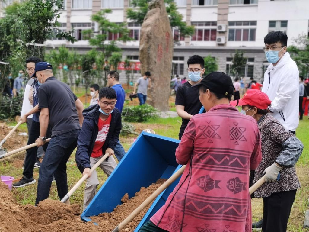 (通讯员张弋明 图片宋娜)5月7日上午9:00在学校德智楼旁的校友林举行了2020届毕业生种树纪念活动,体育学院党总支书记(院长)倪东业,党总支副书记何斌,学生科姜素凤、宋娜、张弋明,班主任李义军、赵鹏全程参加。
