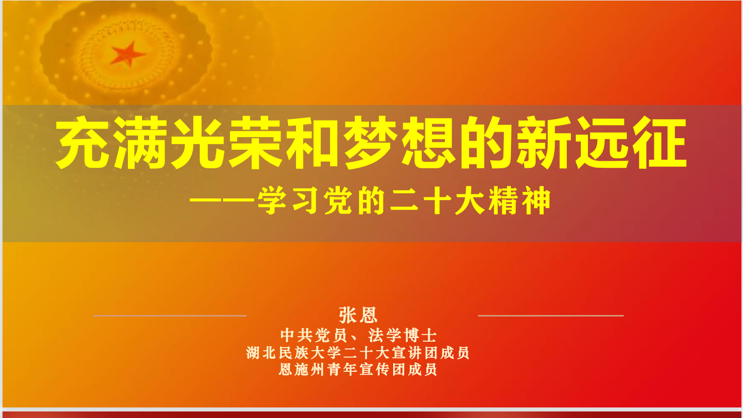 根据学校党委《yL23411永利官网登录学习贯彻党的二十大精神宣讲工作方案》的精神和党委宣传《关于开展2022年12月教职工政治理论学习的通知》工作要求,体育学院党总支于2022年12月26日组织全体教职工开展学习贯彻党的二十大精神线上宣讲活动。本次宣讲活动特邀yL23411永利官网登录二十大宣讲团成员张恩博士进行学习辅导,宣讲由体育学院党总支书记何斌同志主持。