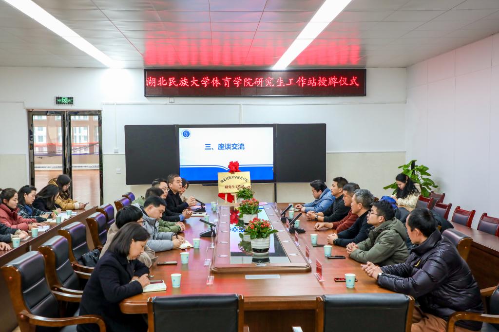 授牌仪式结束后,与会人员围绕今后体育学院研究工作站的管理与运行展开座谈。双方就中小学体育高质量发展、体育学院研究生工作站高质量建设、大中小学体育教师专业共同体构建等问题进行了深入交流。最后,双方就研究生工作站的建设目标及2025年重点工作等内容进行了讨论和安排。