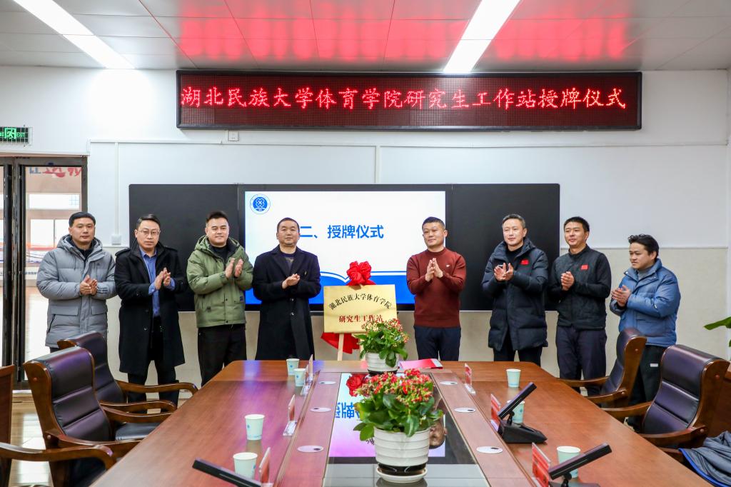 yL23411永利官网登录附属小学对体育学院研究生工作站建设给予了高度重视,校长瞿德威、副校长田艳、副校长陈芳、副校长文静,及全体体育教师集体出席。同时,特别邀请了恩施州教科院小学体育教研员谌鹏、教育局体卫艺股股长康益、恩施市教学研究和教师培训中心教研员向珉参加本次授牌仪式。