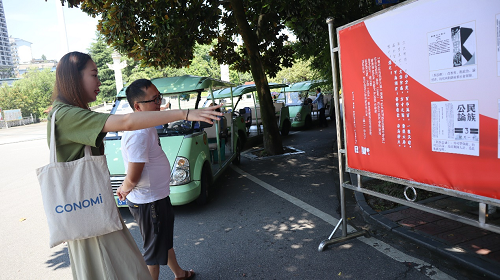 本次项目组共展出了二十四种从民国初年至抗日战争期间最具有代表性的红色报刊文献。每种文献展出内容为三部分:封面、代表作品和刊物简介。通过以醒目凝练的方式向广大师生宣传红色经典报刊文献,倡导呼吁广大当代新青年积极主动地深入学习党史,传承红色文化。展览期间吸引了师生的广泛关注,不少师生员工在展板前驻足观看。为了更好达到宣传效果,项目小组成员李楚、余欣遥、胡迈、唐浪清、唐桢坤、王静文等人还充当起了义务讲解员,在展览期间对前来观看的师生进行经典红色报刊讲解与宣传。