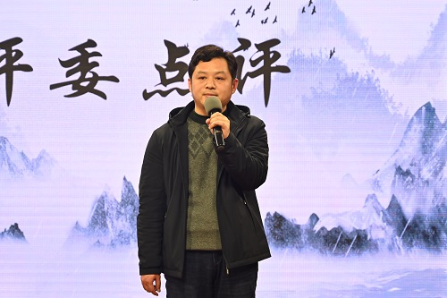教师刘劲松点评。他首先肯定了在场参赛选手的精彩表现,并认为本次诗词大赛将现代中国和古典中国相连接起来,呼吁学生们应该用诗歌筑建心灵,从古典中汲取养分,将诗歌艺术融入生活之中,做一个“腹有诗书气自华”的人。