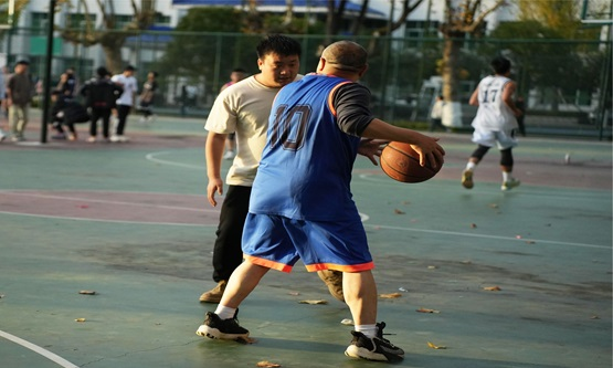 活动分为趣味运动和篮球比赛两个环节。在趣味运动环节中,现场的老师和学生自由组合,参与了各种轻松有趣的小游戏,如“一圈到底”、“共赴前进”、“欢乐踩气球”等。大家在轻松愉快的氛围中相互配合,欢声笑语不断。