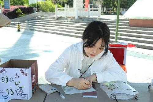 活动采用线上传递和线下传递相结合的形式,学生在活动期间发送一封时光信件,一年后由文学与传媒学院心理健康工作室的工作人员投递给收信人。活动现场,学生在信纸上写下自己的时光信件,参与者或是写下对未来的展望,或是写下对身边朋友的知心话语。这些时光信件都将装入信封封存后投进收信箱,完成信件投递后的学生还可以抽取书签、钥匙扣等精美礼品。活动结束后,为保护个人隐私,工作人员将收纳整理时光信并集中保存。本次活动共收集线上时光信49封,线下44封。