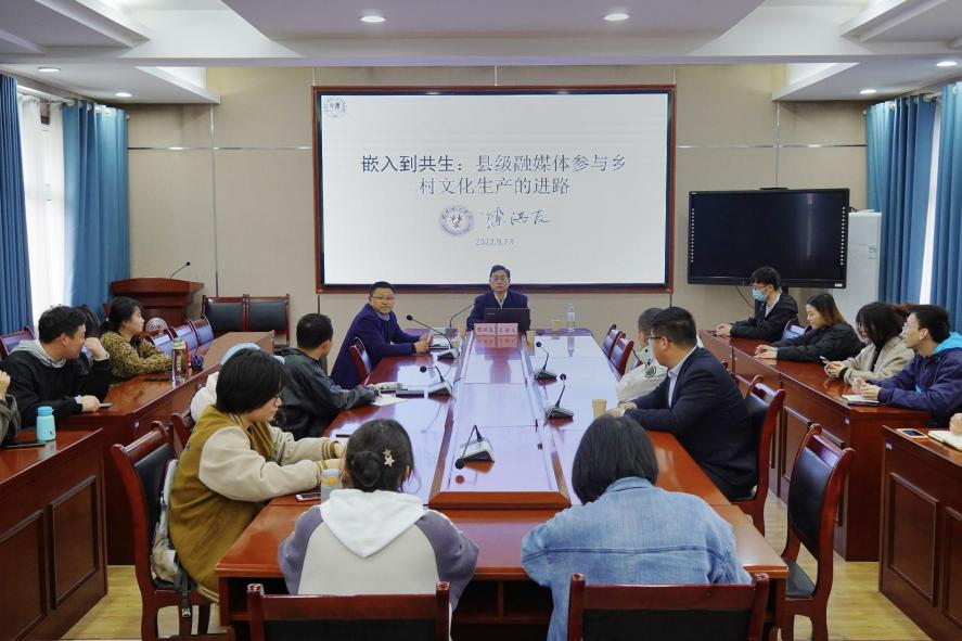 本网讯(记者 袁益涛 吕梦蝶) 3月10日下午,荆楚理工学院陈洪友教授受邀来访我院,为全院师生进行学术讲座。本次讲座由我院副院长刘进华主持。陈洪友教授以“嵌入到共生:县级融媒体参与乡村文化生产的进路”为题,围绕“县级融媒体参与乡村文化生产的困境”“建立县级融媒体参与乡村文化生产的关...
