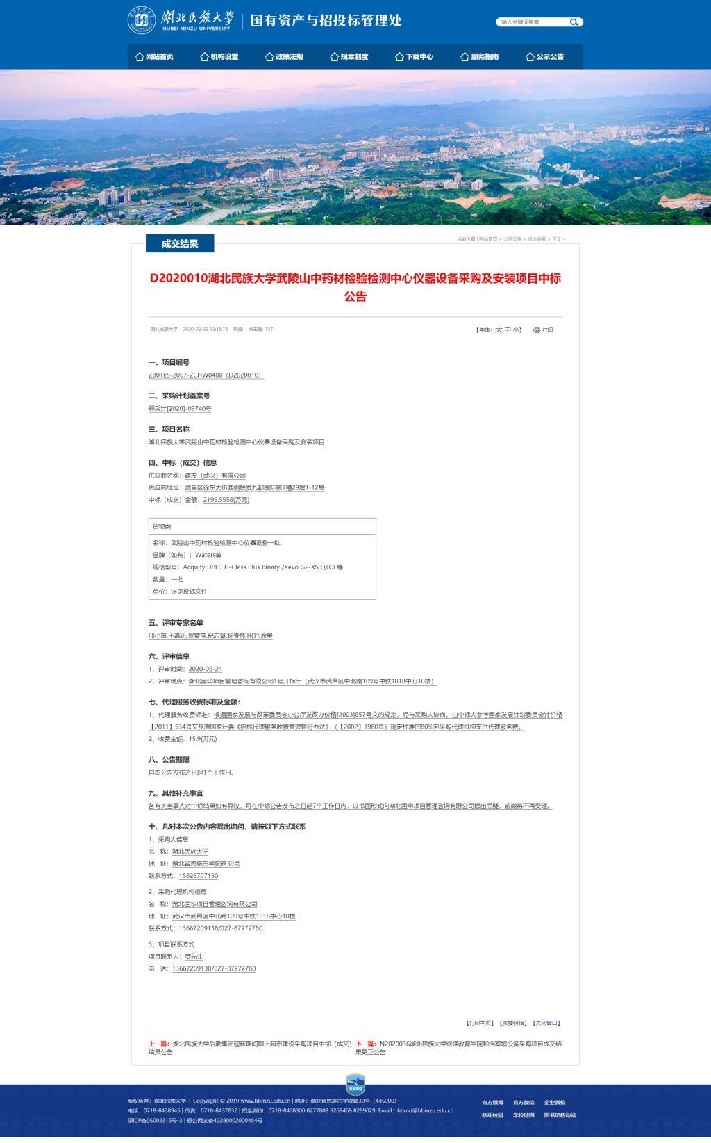 yL23411永利官网登录武陵山中药材检验检测中心仪器设备采购及安装项目中标公告