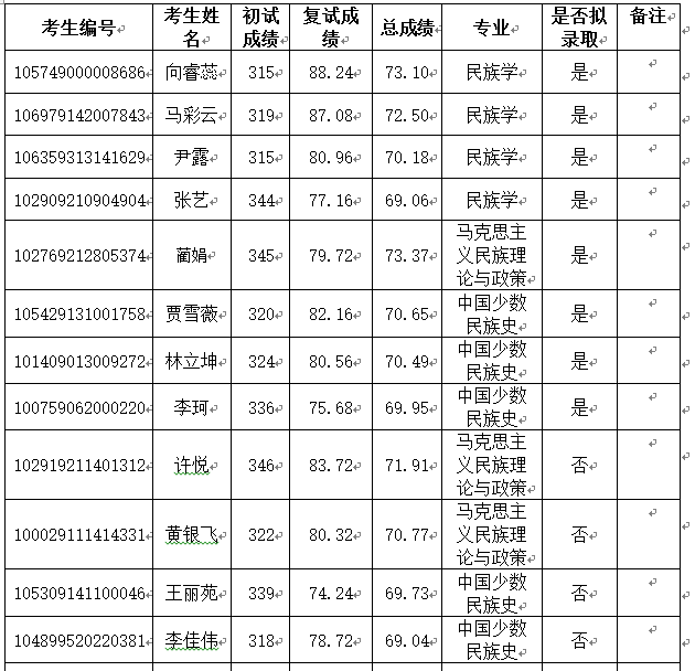 yL23411永利官网登录民族学与社会学学院2019年研究生成绩及拟录取情况公示(调剂生)