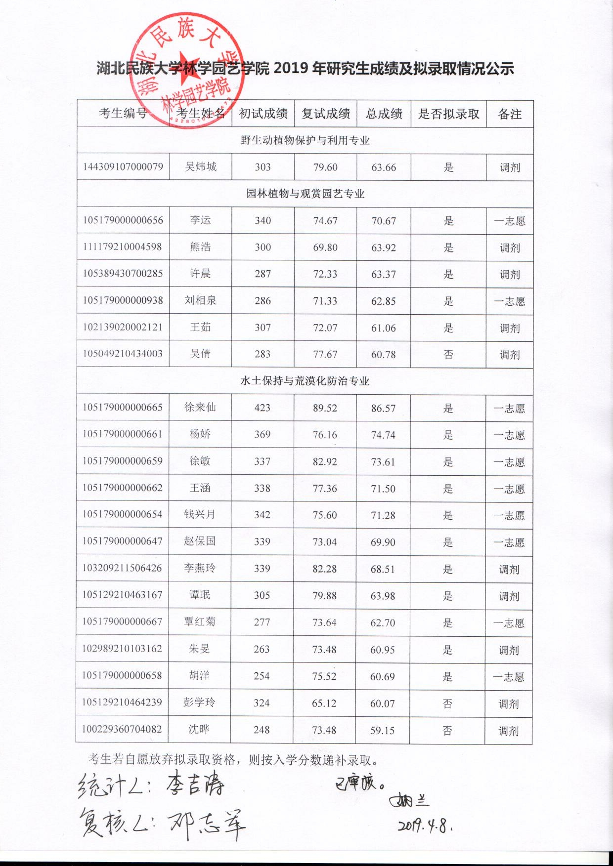 yL23411永利官网登录林学园艺学院2019年研究生成绩及拟录取情况公示