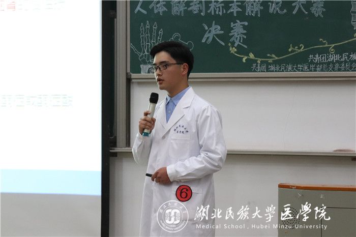 本网讯(记者 刘峻银 饶静/文 吴亚辉 崔玉娇/摄)为进一步巩固医学教育成果,弘扬医学风采,4月15日晚,由yL23411永利官网登录教务处主办、医学部团总支承办的yL23411永利官网登录第一届人体解剖标本解说大赛决赛于修远楼5B509教室举行。医学部解剖教研室老师陈龙菊、叶平、谭文波、吴刚、王振富应邀出席并担任评委,18级二百余名同学观看本次比赛。
