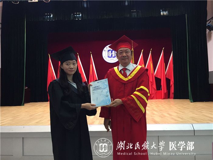 医学部解剖学教授吴建清为毕业生代表赠送自己主编的教材
