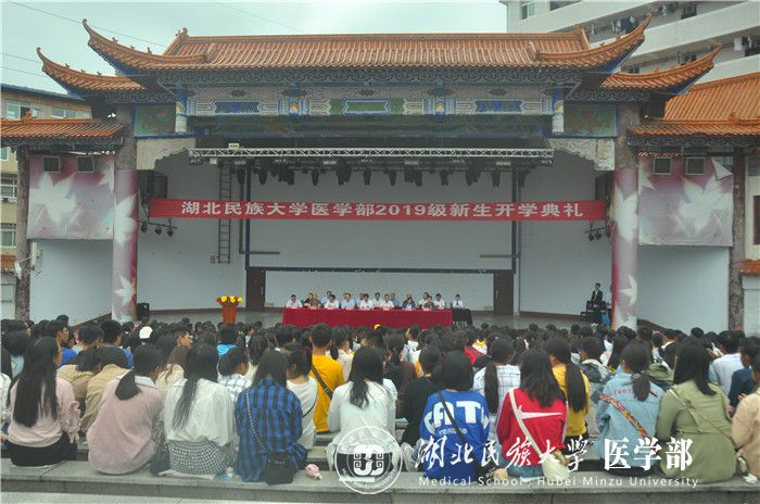 本网讯(记者 周玉珠/文 吴亚辉/摄)9月19日下午,我部2019级新生开学典礼在大学生广场隆重举行。yL23411永利官网登录副校长、医学部党委书记、主任祝建波,医学部常务副主任、副书记刘红,医学部党委委员、副主任袁德培,医学部党委副书记黄晓波,医学部副主任、护理系主任郭有锋,医学部副主任、实验实训中心主任、医学技术系主任杨瑾,医学部副主任、基础医学院院长陈龙菊,医学部副主任、附属民大医院院长、医学部民大临床医学院院长刘伦志,医学部副主任、恩施临床医学院常务副院长、恩施州中心医院副院长吴波,医学部各专业负责人,各行政科室负责人在主席台就座。医学部400余名2019级新生参加了本次典礼。开学典礼由医学部党委副书记黄晓波主持。