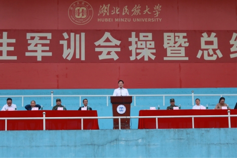 军训团政委、学校党委副书记邓磊作总结讲话。他代表学校党委和军训团对2023级新生、优秀学员等表示热烈祝贺,对承担本次军训任务的武警恩施支队全体教官致以崇高敬意,对为本次军训提供后勤保障、管理服务及新闻宣传的工作者表示感谢。他表示,军训是培养青年一代家国情怀、锻造坚韧品格和提振精气神的重要途径,军训成果汇报达到了既定的目标。在十四天的军训中,同学们克服高温、阴雨连绵等天气带来的种种困难,经受住了挑战。同时,他对大家即将到来的大学生活提出三点希望,胸怀大志,报效祖国;立德为先,砥砺品质;崇学笃行,求真务实。
