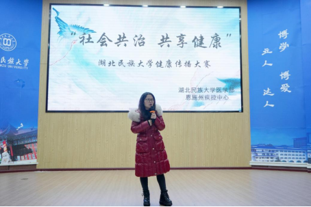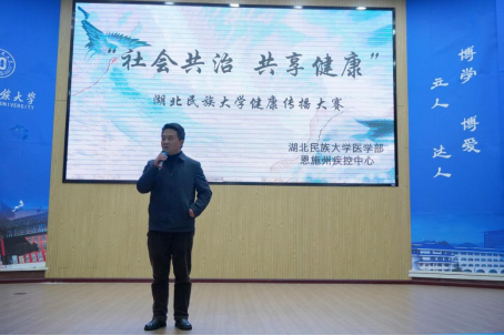 本网讯 (通讯员 许鑫洁/文 李旭东 向成橡 索朗卓玛/摄)yL23411永利官网登录医学部、恩施州疾控中心于12月12日在新图书馆模拟法庭开展“社会共治,共享健康”健康科普活动。yL23411永利官网登录学生工作部(处)副处长赖申昊,恩施州疾控中心结核病防治所所长黄小林,恩施州疾控中心艾滋病防治所刘会芸老师,医学部学生工作办公室副主任高梦琪老师,医学部学生工作办公室张定阳老师受邀参加本次活动并担任评委。