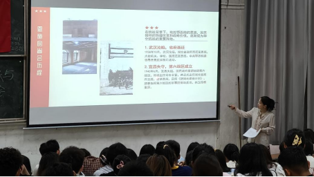 课堂上,陈龙菊提出关于“恩施地理位置与战略地位”、“恩施的省会历程”、“抗战中的重要战役与事件”、“坚定理想信念,对党忠诚”、“抗战先烈何功伟”等相关问题并从这五个方面展开。据陈老师介绍,在抗战时期,恩施作为“川鄂咽喉”、“荆楚屏障”是重要战略地。因战时所需,恩施开展大规模市政建设,军民借地形优势顽强御敌,守护大西南后方。并向同学们介绍了英烈何功伟信念坚定,面对威逼利诱坚贞不屈,英勇就义的故事。课程最后,陈龙菊老师总结:作为党员发展对象应传承抗战英烈精神,践行党员初心使命。