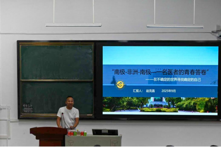 本网讯 (记者 童贝/文 向成橡/摄)为增强2025级新生对临床医学专业的兴趣,9月14日,医学部在8305教室成功举办南极科考站讲座,2001级校友赵克昌应邀出席。