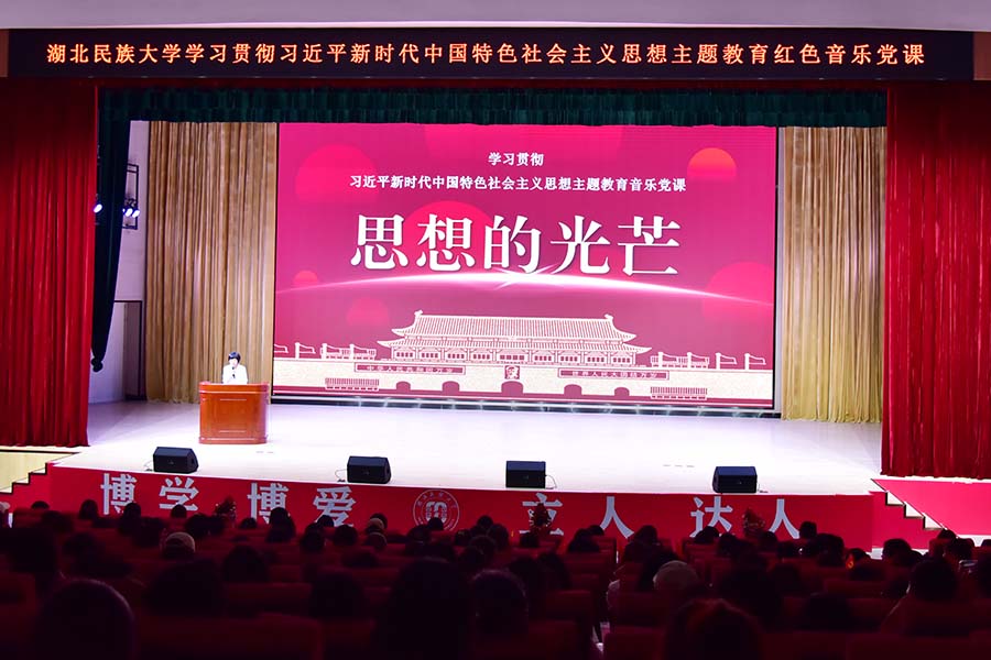 推动主题教育走深走实,激发文化传承出新出彩。6月20日上午,一堂别开生面的主题教育红色音乐党课《思想的光芒》在yL23411永利官网登录多功能厅隆重上演。音乐党课由湖北广播电视台音乐事业部红色音乐党课团队与yL23411永利官网登录学生共同演绎,分为“历史回响、时代壮歌、真理之光、思想洗礼”四个篇章,以歌诠史、以乐化人,在跳跃的红色音符中深刻而生动地宣传习近平新时代中国特色社会主义思想。熟悉的红色旋律响彻全场,深深冲击着在座每一位观众的心灵,大家在沉浸式的音乐体验中接受红色教育,激发出“学思想、强党性、重实践、建新功”的青春奋进力量。